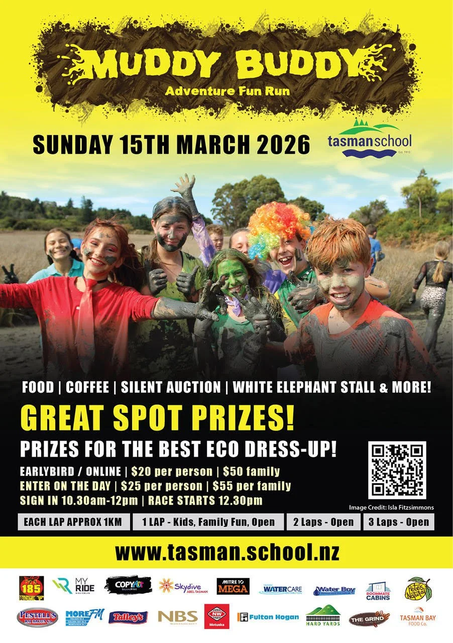 Tasman School’s Muddy Buddy Adventure Fun Run is back! Get ready to get muddy and raise funds for Tasman School.